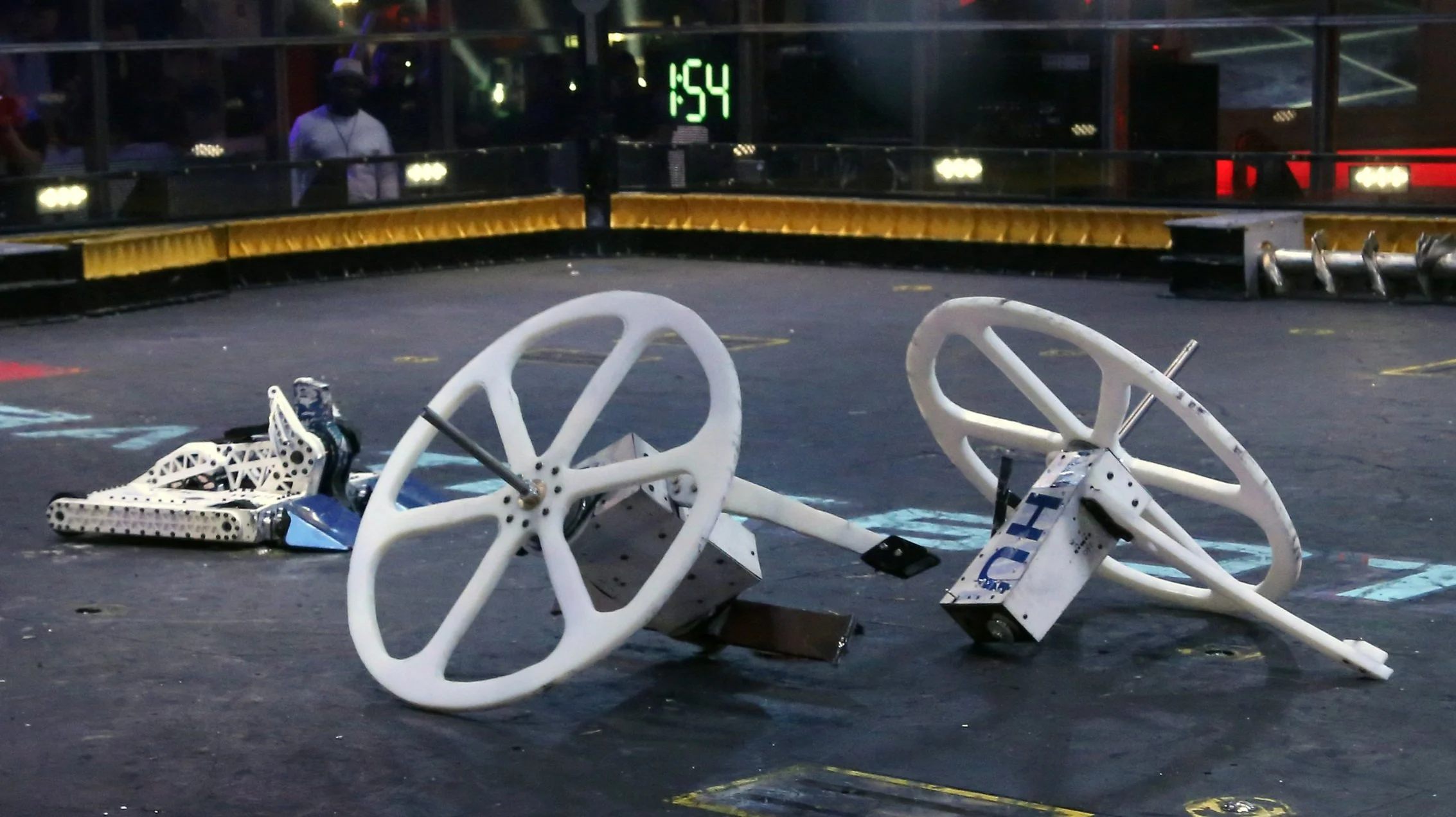 This was a heartbreaking way to end the season, with a victory in our grasp against such a formidable opponent. But it was also an amazing “what-if”, as Bite Force would go on to win the 2018 (and 2019) championships undefeated. The most prepared builders tend to have the best luck, and Bite Force earned this win by wearing us down and withstanding the hits. Like with Icewave, we learned a lot from this fight to apply to future versions of HUGE. And unlike with Icewave, we look forwards to this rematch!